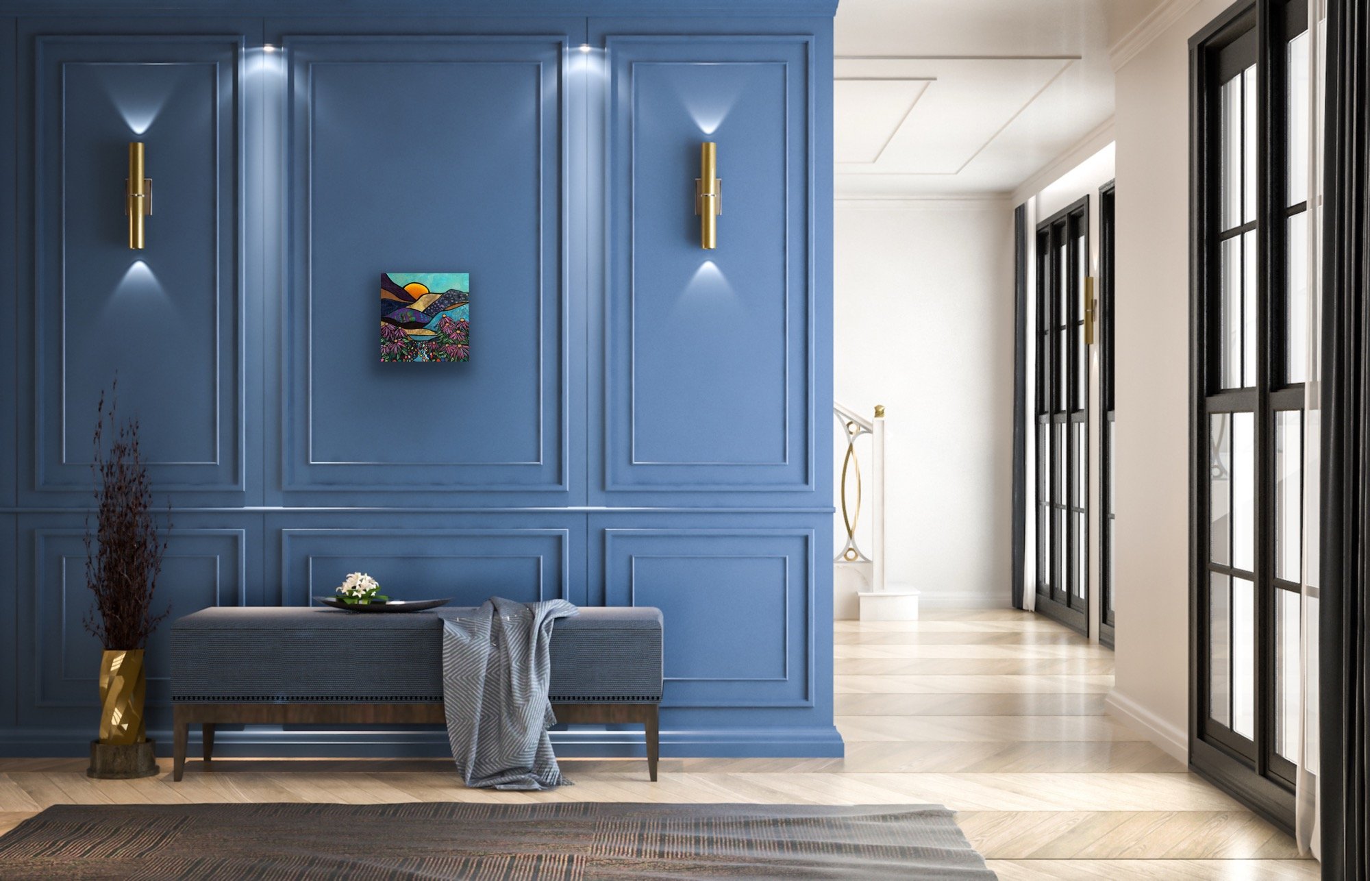 Acrylic and fabric on cradle board
